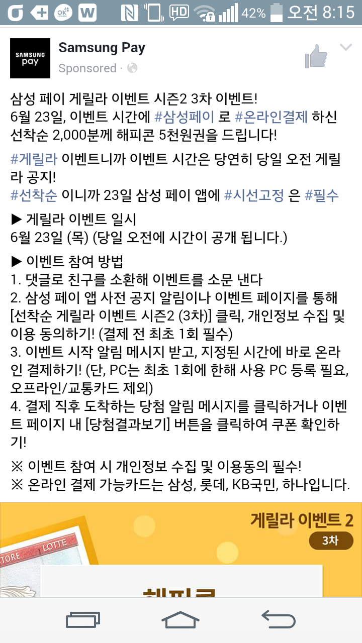 아.. 삼성페이 강건너 구경만 할 뿐이네요 ㅠㅠ |