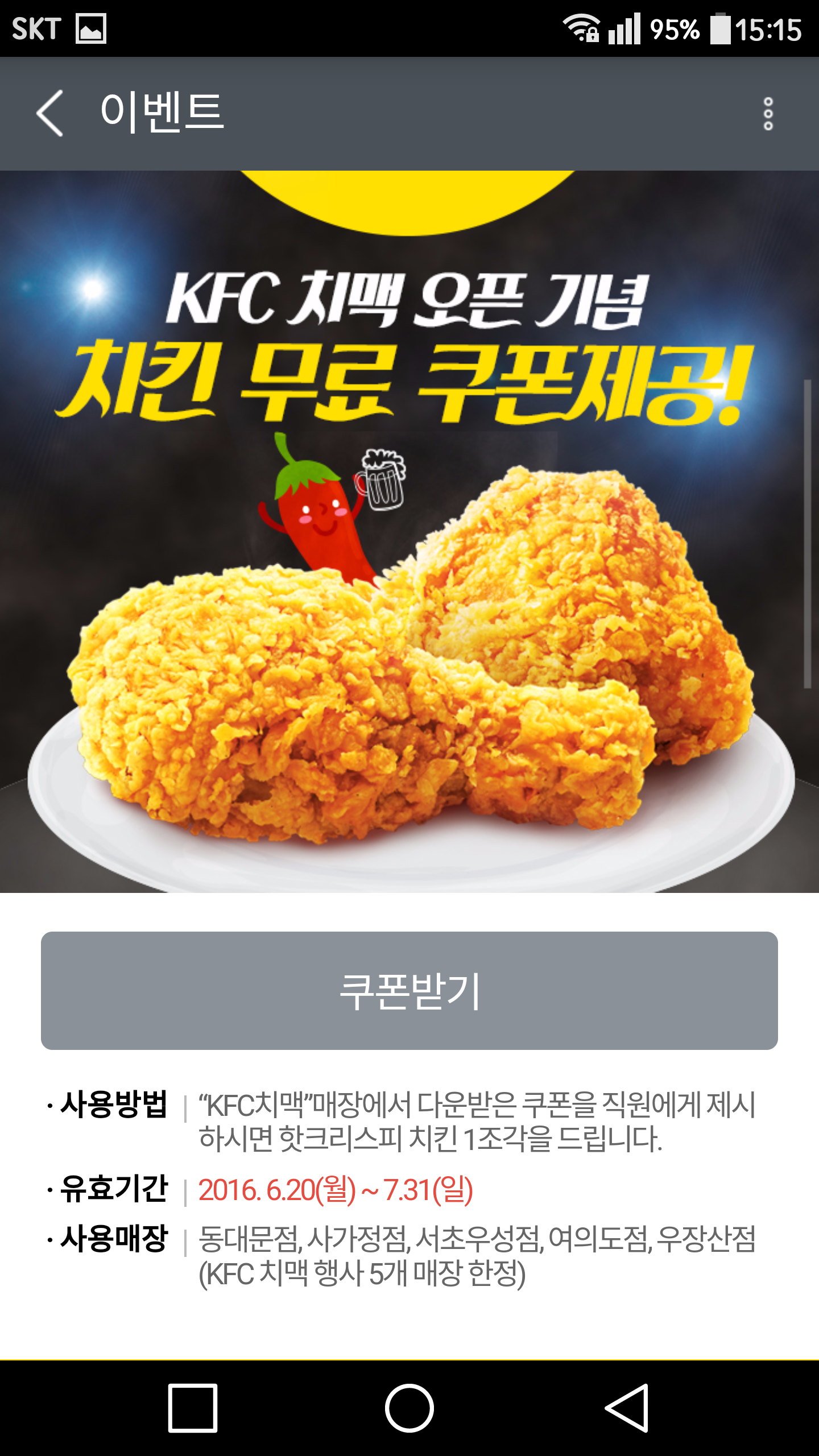 [오케이캐쉬백] KFC 치킨1조각 무료제공 외 > 이벤트게시판
