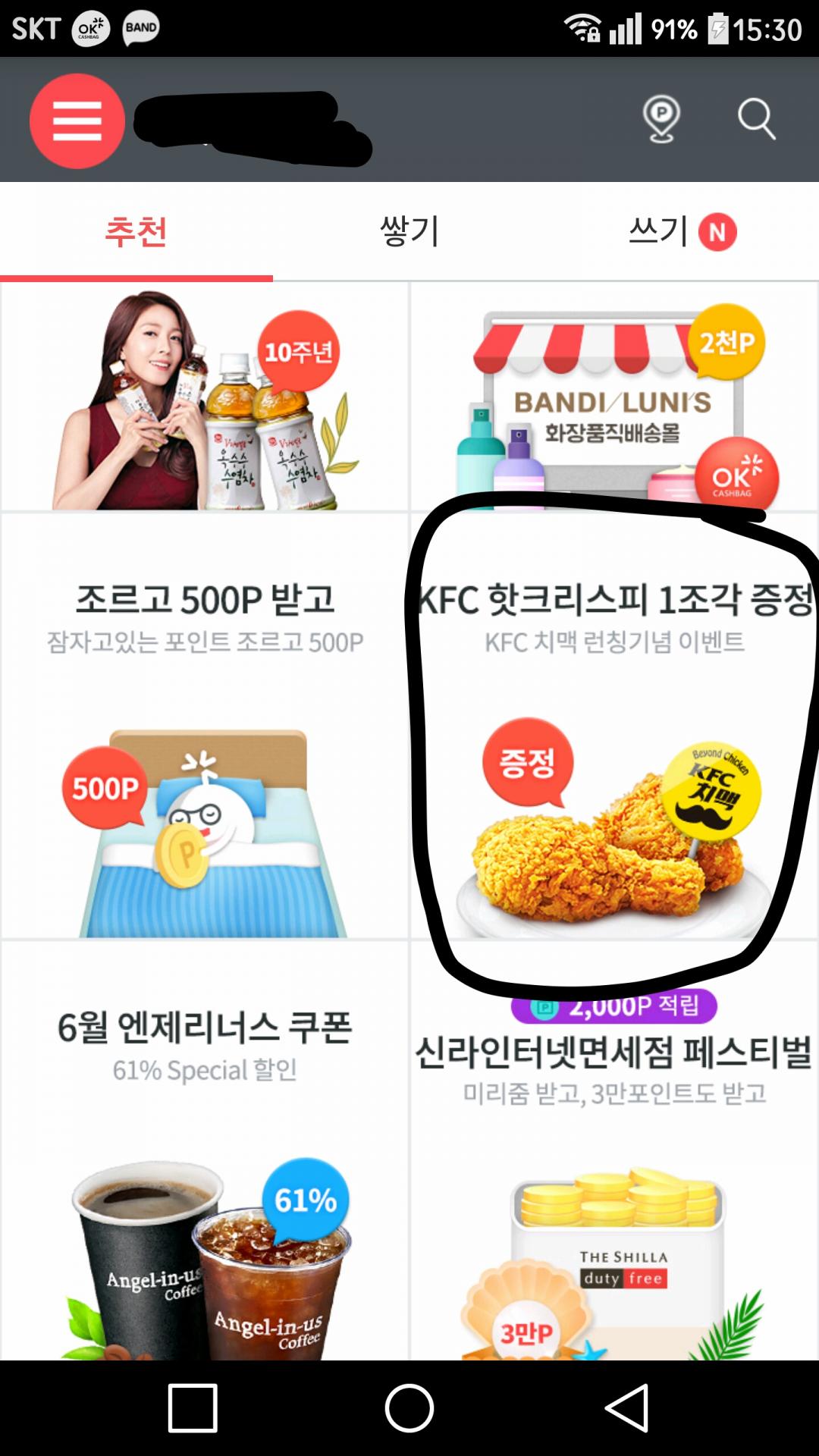 오케이캐쉬백 앱에 들어가니 이게 있네요.