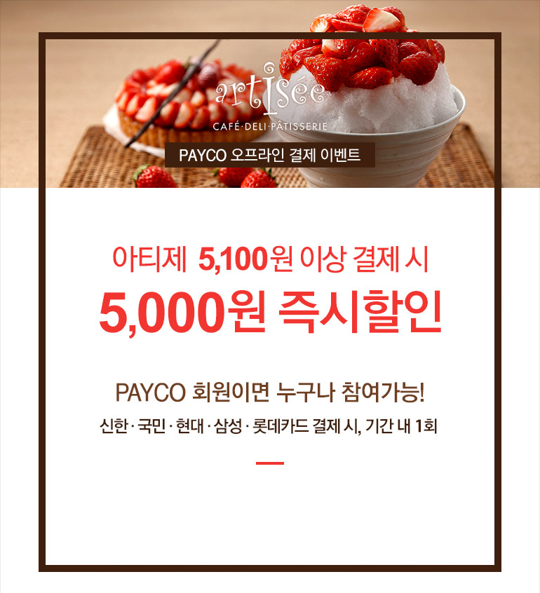 [페이코] 아티제 5100원이상 결제시 5000원 할인 (~6/26) > 이벤트게시판