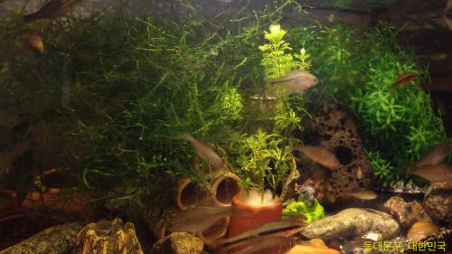 어항속 수초라곤 붕어 마름, 모스가, 이름을 잊어버린 수초그리고 인공수초까지 뒤섞여져 있습니다. 좀 이쁘게 해보려고 해도 귀차니즘때문에...