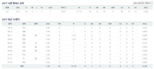 일단 직전경기는 어제 1이닝 15개투구 11개 스트 1안타 2삼진 기록했습니다..