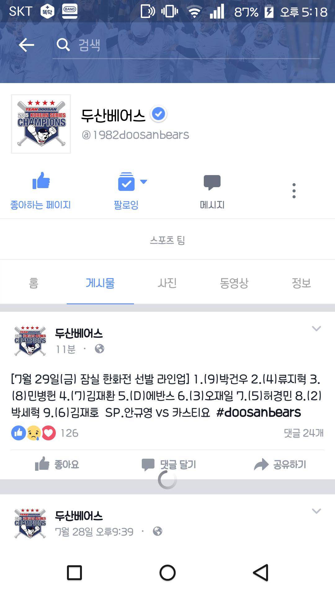 7월29일 두산 라인업입니다. > 야구포럼