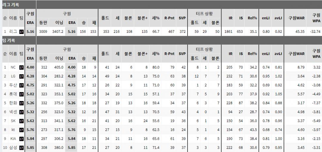 기아 불펜 방어율 드디어 9위 등극했습니다 ㅠㅠ