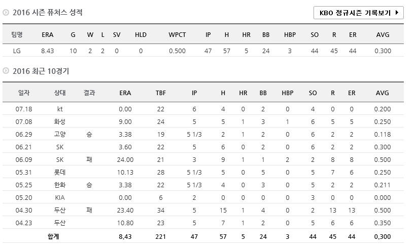 2군에서의 기록............ 제가 그닥 올해는 기대 안하는 이유...................