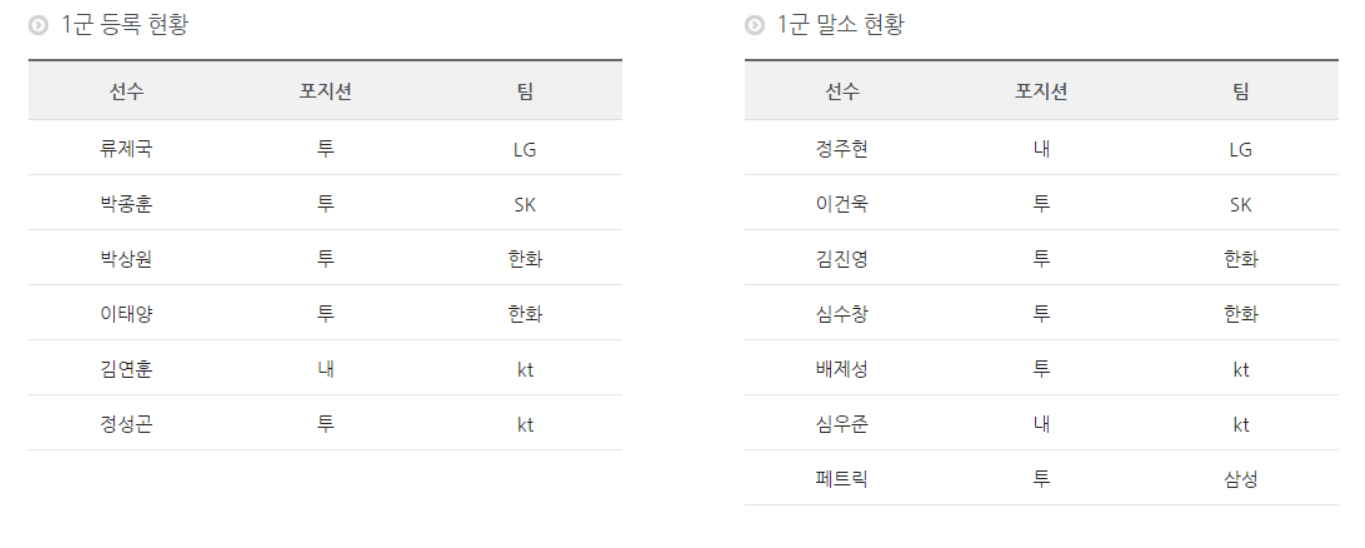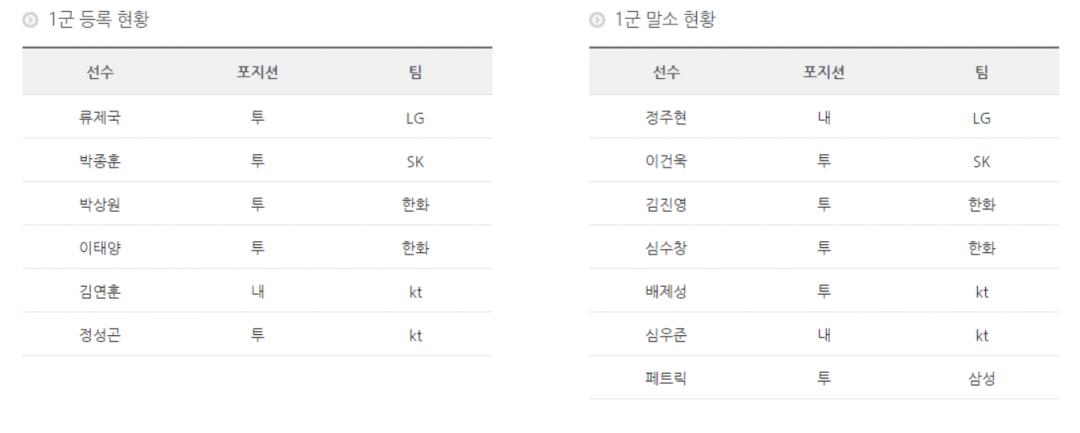 7월20일 등록 말소 현황.txt > 야구포럼