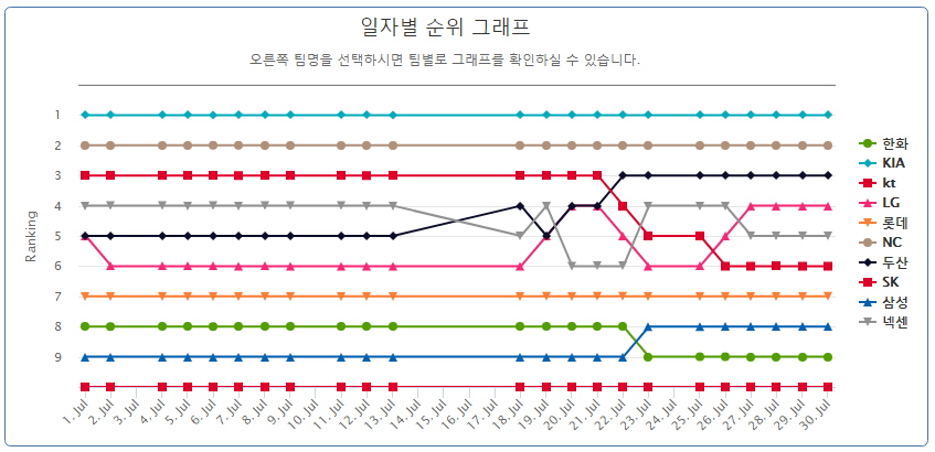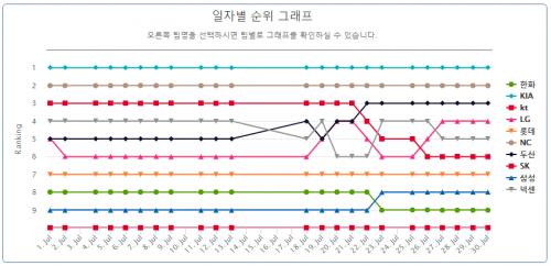일자별 순위 그래프 > 야구포럼