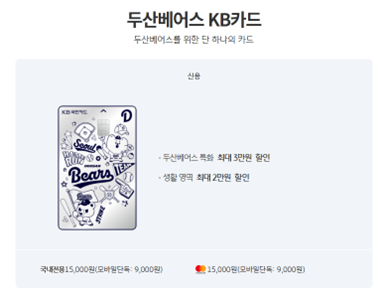두산 팬이시면 혜택도 좋고 생활 할인도 들어가있어서 발급받으셔도 좋으실 것같습니다