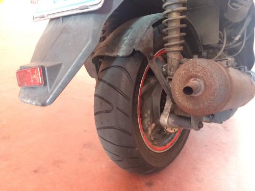 새로운 밸브를 결합하고 타이어왁스 대용인 기어오일을 바르고 새 타이어를 끼우고 조립합니다.