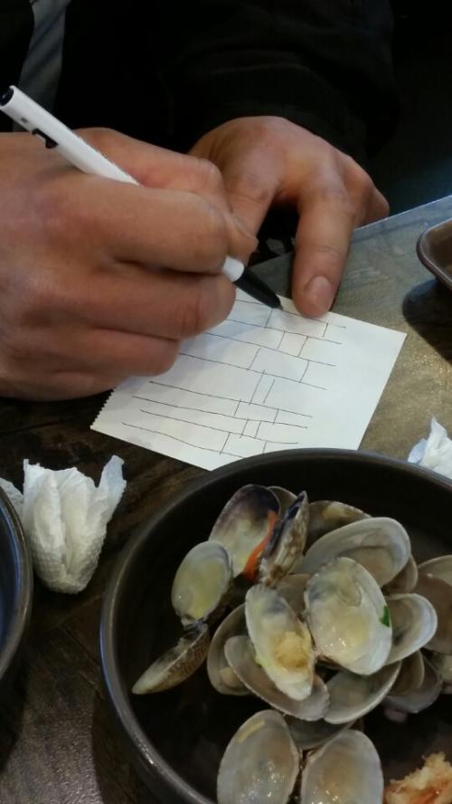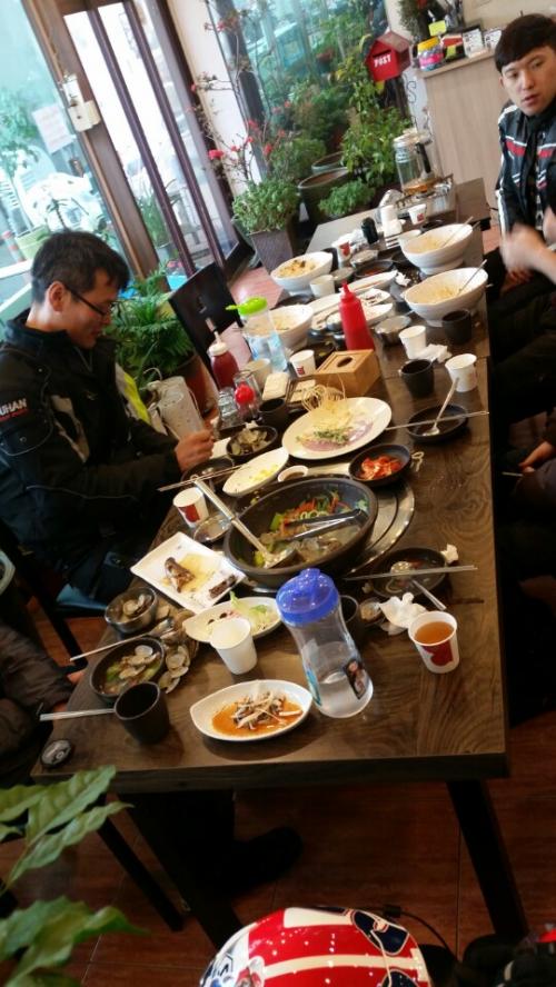 3명은 복귀하고 남은 8명이 식사하러가서 맛있게 폭풍흡입합니다~ 회덥밥4 바지락칼국수3 새우튀김1 공깃밥2 양껏먹고나니 야고님께서 사다리를 외치십니다~