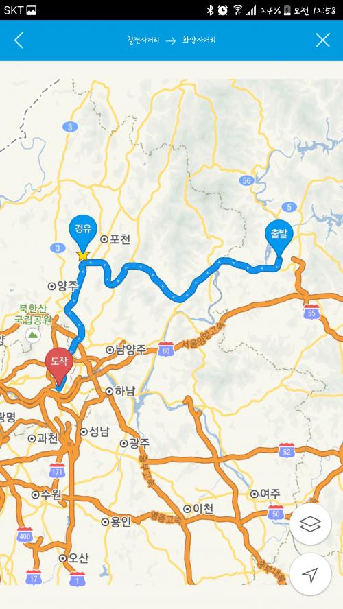 특별한 목적이 있는 동선은 아니고, 가족이 있는 본가는 춘천, 학교는 포천, 주거주지는 광진구쪽이다보니..