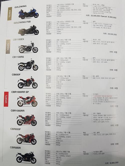 눈여겨 볼것은 CBR650F의 기본사양란에 ABS가 떡하니 들어가 있네요