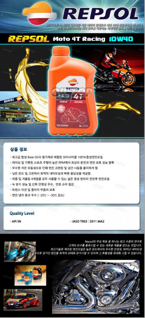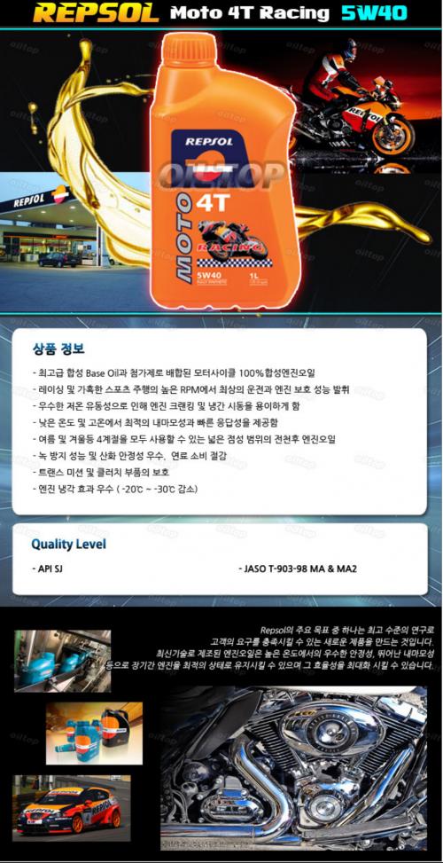 그런데 주문하려고 보니 같은가격에 같은100%합성유에 같은 분류(racing, off road, 스쿠터등 종류가 많더군요)인 레이싱인데 서로 다른 주문번호를 가지고 있어 뭐가 다른가 봤더니 점도가 조금다르고(5w40 / 10w40) API등급이 하나는 SJ 하나는 SN이네요.
