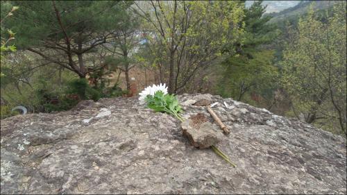 힘들게 ? 올라와서 그분 가신곳 바라보며 국화꽃 두송이와 담배 한개피 피워드리고 내려갑니다.