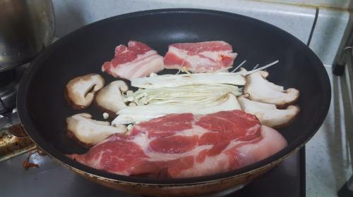 다음날은 소를 먹을거라서 첫날엔 간단하게 돼지로 준비해주는 센스!!