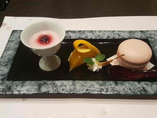 이 산슈에서 먹었던 저녁 및 후식 사진입니다. ㅎㅎ 마카롱은 진짜 마카롱이 아니라 뚜껑을 여니까 안에 아이스크림이 있더라구요 ㅎㅎ 아기자기한게 귀여웠습니다.
