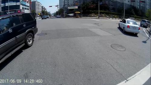 오른쪽에 보행자가 있었고(이 보행자도 신호위반 무단횡단) 신호는 3시에서9시 방향 초록불!
