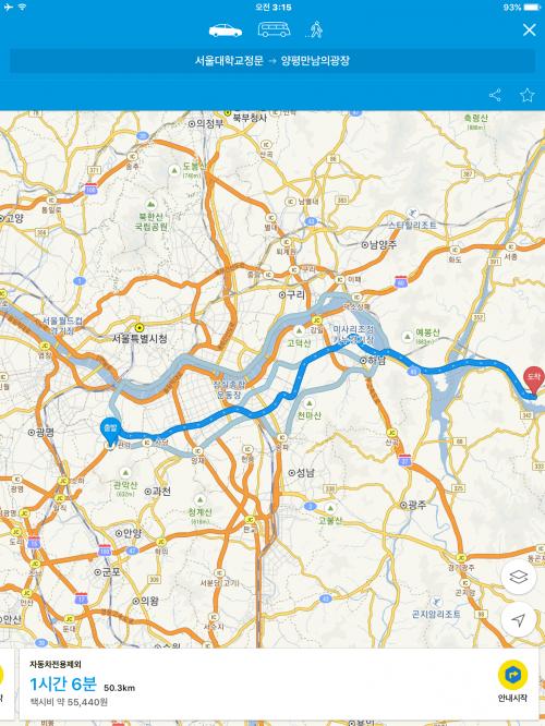 곤님 따라서 팔당대교 건너고 나서 곤님은 좌회전 하시는데 네비가 계속 직진하라고 하길래...