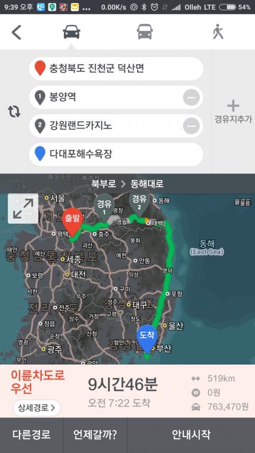오 원래 전용도로 회피로하면 울진쯤에서 삼각형으로 산타고 돌게되어있는데 바귀었나보네요 ㅎㅎㅎ 직선으로 내려오네 | ||