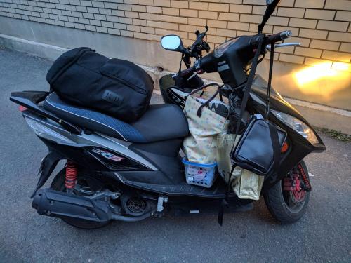 짐이 후덜덜하네요~발판스쿠터의 적재능력 대단하네요~^^ | ||