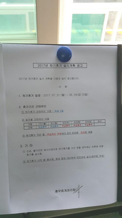 게다가 여름휴가 일정은