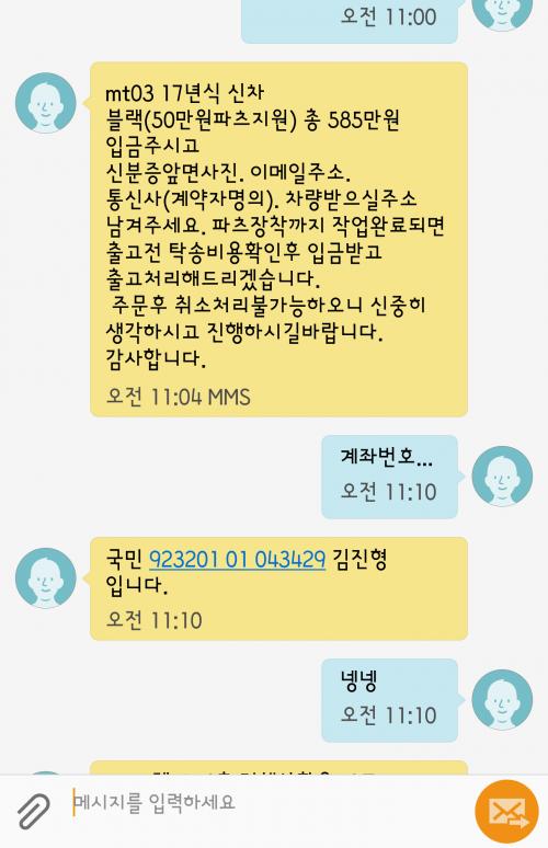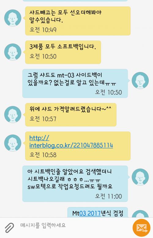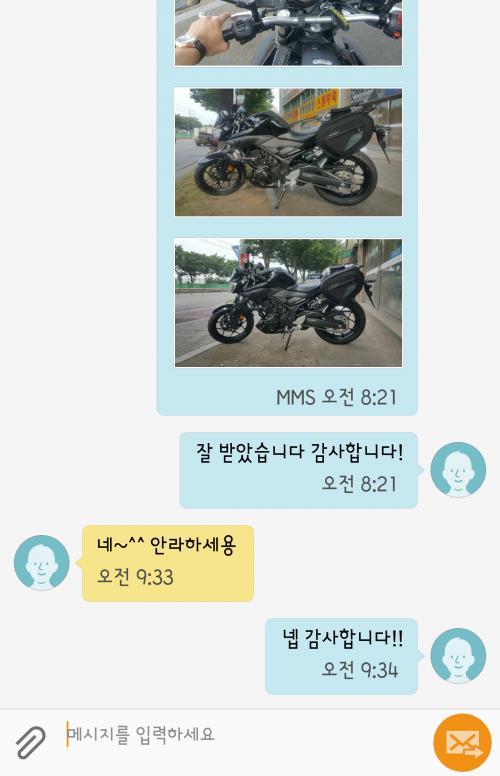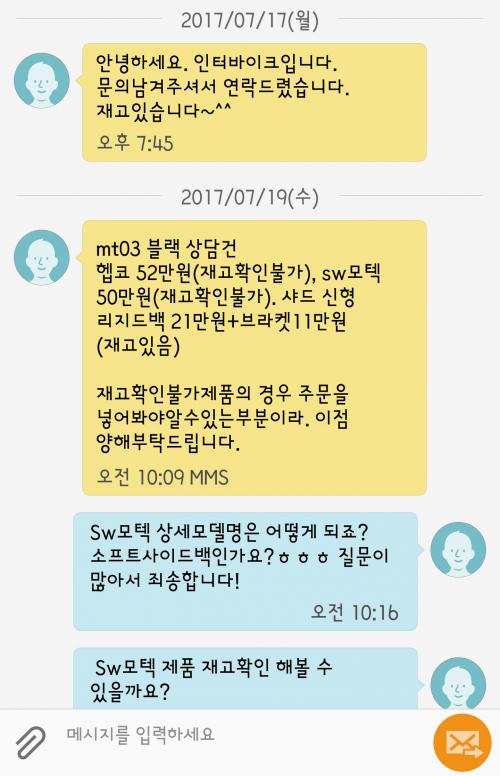 인x바이크 영업팀 직원분과 주고받은 문자내역입니다.