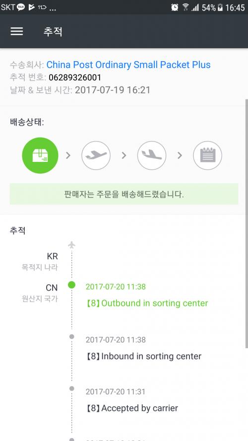 도착했는데 중국 떠났다는 마법이 있더라구요 | ||