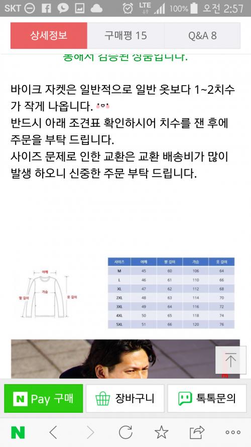 상의는 위 모델에서 L사이즈로 주문하려하구요..