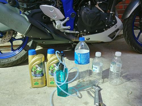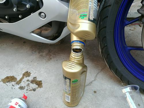 PET 병 잘라서 요렇게 주입 완료.... 하고 보니 오일 인디케이터 창에 max를 넘어갑니다 ㅋㅋㅋㅋ