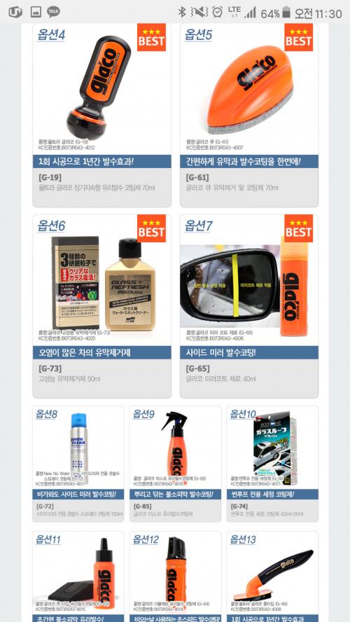 글라코는 가격대가 좀 나가더군요. 그냥 불스원으로 가는게 나을것도 같습니다.