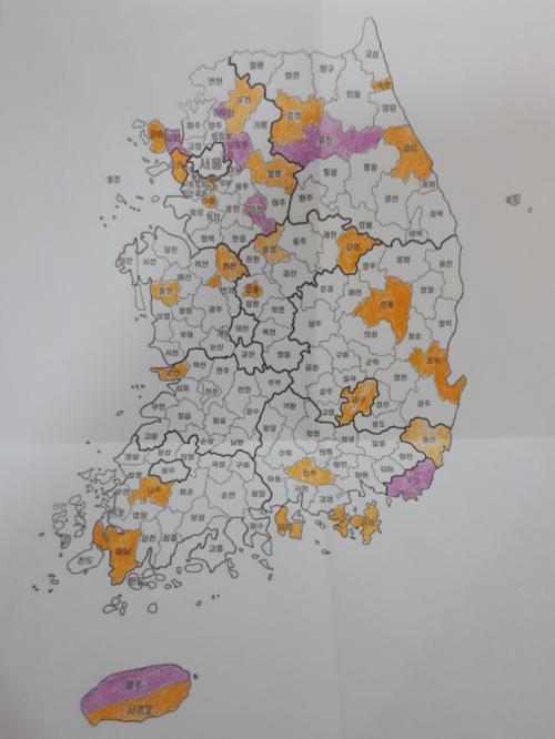 바로 옆에 붙은 지역은 다른 색 칠하기입니다.
