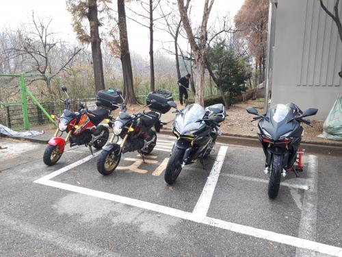4대의 바이크 정비(체인유격조절 루브칠)를 위해 나란히 세워봤습니다~^^ 혼다 MXS125 CBR250RR~^^
