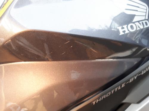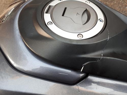 탱크카울 깨짐....ㅠㅠ 이게 엠엑이 핸들 모서리로 떨어지면서 오른쪽 사이드카울들 긁힌건데 탱크카울은 아예 깨졌네요 게다가 앞쪽 6각렌치풀어보니 안쪽에 잡아주는 플라스틱 2개중 한개부러지고...조각은 바이크몸통쪽으로 들어가서 행방불명ㅋ 플라스틱용 순간접착제로 한시간가까이 미하엘님과 낑낑대며 붙여보려했지만 뒤틀린 플라스틱이 벌어지려는 힘때문에 결국 못붙였네요 그 결과