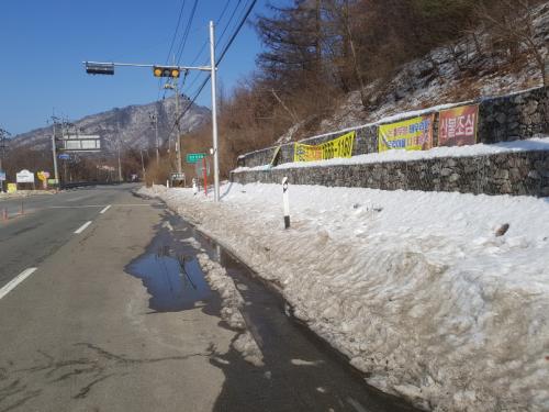 지난주에 내린 눈으로 추정되는게 마구마구 녹으면서 도로가 물바다입니다