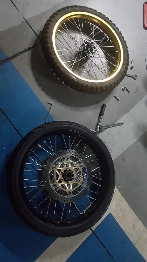 일전에 아프리카트윈 타이어와 휠 앞뒤 세트로 너무싸게 올리신분이 있어서 업어왔었습니다.