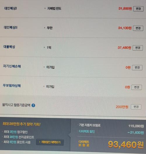 다른건 모르겠지만, 대물 1억은 너무 적으실 것 같아요. 요즘 외제차도 많고 비싼 차들이 많아서 1억은 조금 후덜덜하죠.