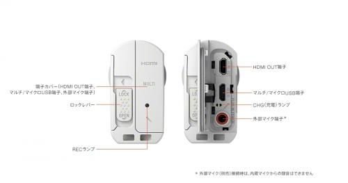 각종포트 뒷면으로 이동(충전중 촬영/외장마이크단자 사용 가능)