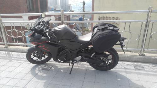 전에 싸게 구매해 놓은 중고 사이드백?을 투어를 위해 장착했어요.