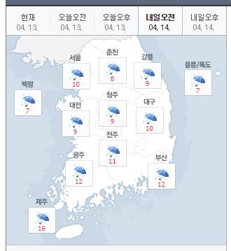 헐 ㅠㅠ 대신 일요일은 화창하네요 | ||