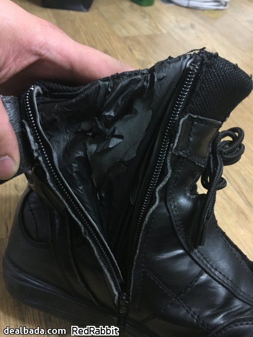 부츠 양쪽 다 지퍼 안쪽 내피 껍데기가 엉망진창입니다. 그래도 지퍼 잠그는데 문제없고, 보이는 부분은 아니어서 다행이라고 생각합니다. 차라리 다 뜯어내는게 낫겠다 생각이 듭니다.