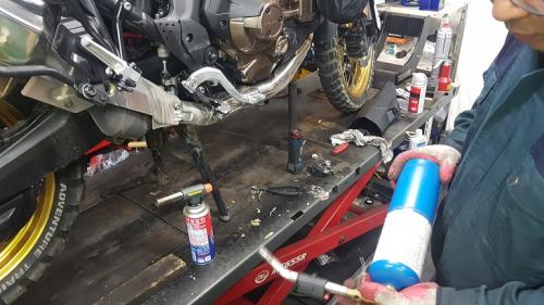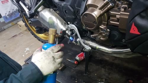 하지만 패그가 휜게 아니라 그 아래 패그와 머플러를 잡아주는 브라켓이 휜것이었습니다.