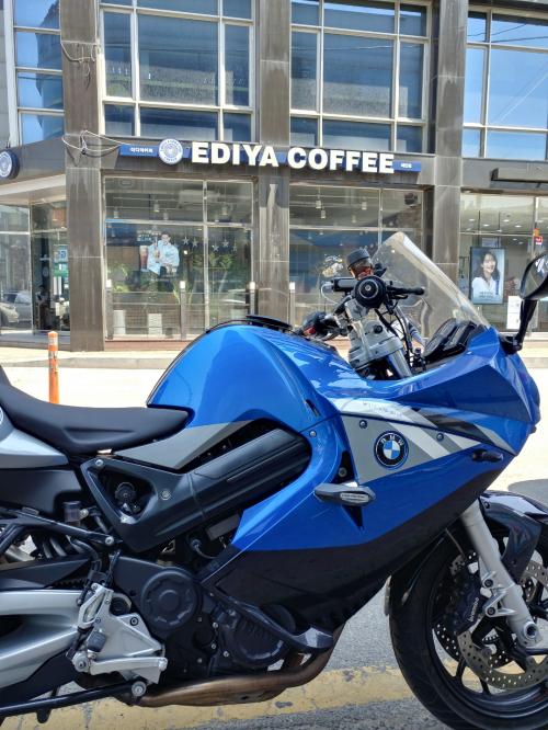 파란색 바이크에 이디야 커피 배경이 잘 어울려요^^