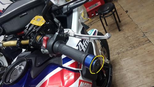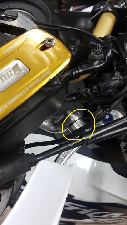 바이크가 꿍을하면 바엔드에 있던 C고리가 당연히 부러지면서 사이드미러 브라켓도 데미지를 줍니다.