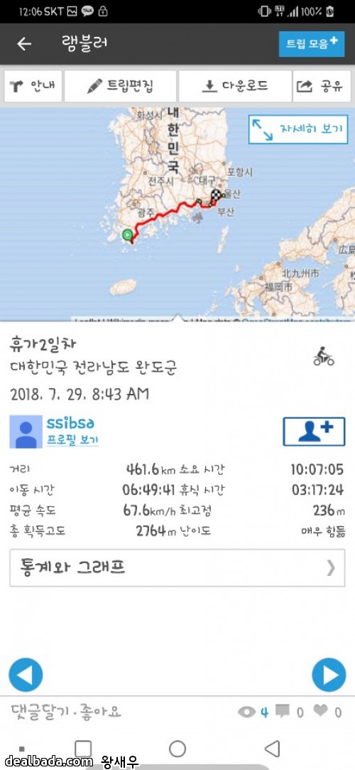 2일차에 461km주행하셨네요....초인적인 체력^-^)b