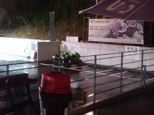 서울에선 비 하나도 안내리고 바이크 간만에 타는 와이프 바들바들 거리면서 주행하는거
