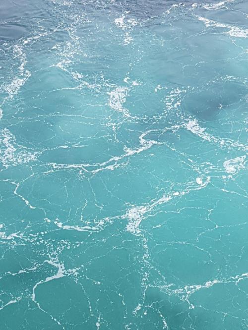입항하는 순간에도 바다는 이곳이 제주라는 것을 말해주는