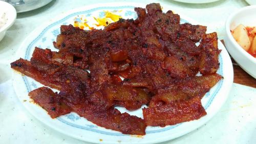 사실 돼지불고기를 엄청 기대하였으나 그냥 soso 한 맛이었고, 돼지 껍데기가 신의 한수였습니다.
