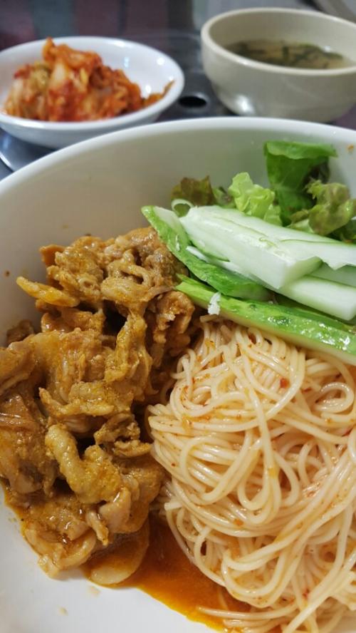 지나가다가 발견한곳인데... 비빔국수 먹으러갔는데 왠 고기가...