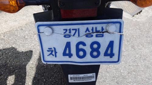 봉인나사 양옆으로 조금씩 조금씩 찢어져오던게 결국 일년만에 만나게 됬네요ㅋㅋ 급한대로 투명테이프로 감고 주행해보니 뒤에서 미하엘님이 번호판 불빛에 번호식별이 안된다고 하십니다ㅠㅠ 그래서 오늘 일하는중에 잠깐 짬내어 번호판 새로 발급받았네요~^^ 같은번호로하려면 다음날 수령해야된다길래 그냥 다른번호로받고 보험회사에 번호바꿔등록까지 완료했습니다~~~