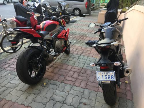 제가 탈 bmw s1000r 세차하고 사진 찍고 다시 카바 덮어서 봉인해놨어요.